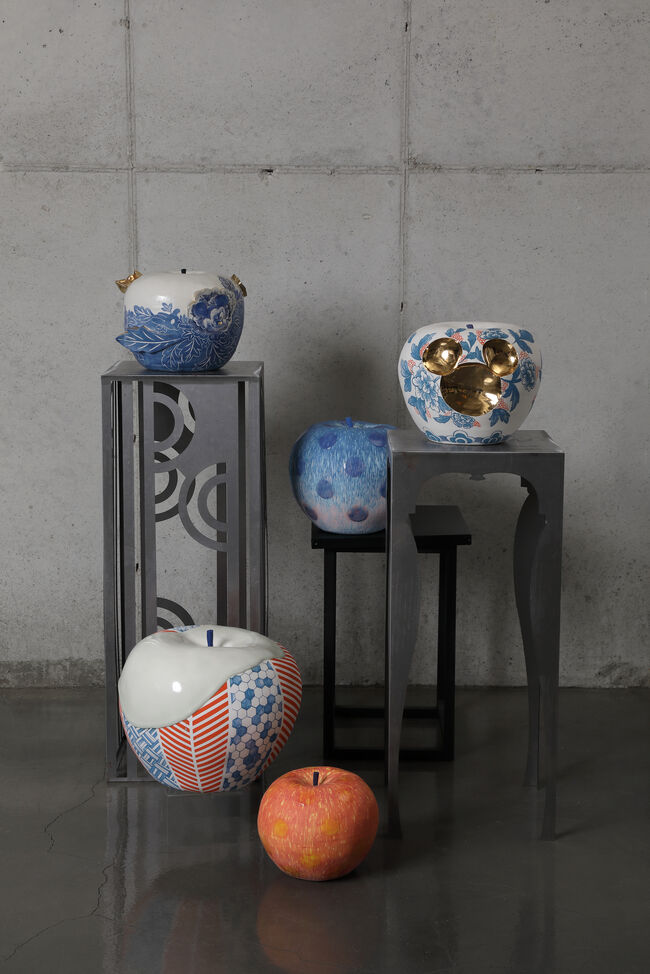 「POP-apple시리즈」 화장토, 채색, 코발트, 골드, 유약 반복 소성 I 2024