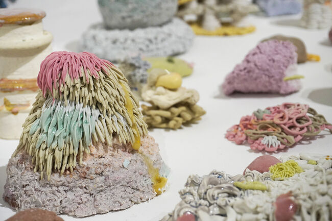 완연한 가을, 홍익대학교 도예·유리과 석사학위 청구전이 지난 10월 9일부터 13일까지 홍익대학교 현대미술관에서 개최되었다. 총 13명의 대학원생1이 참여한 이번 전시에는 다종다양의 작품이 가득했다. 전형적인 도자기 형태를 차용한 작품을 비롯해 구상에서 추상에 이르는 여러 작품에서 저마다의 내러티브와 탁월한 독창 성을 엿볼 수 있었다. 필자는 이 중에서 소재 활용의 참신한 시도가 인상적인 작품 몇 점을 소개하고자 한다.