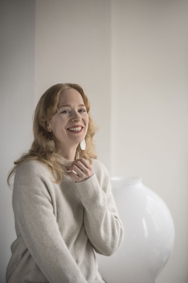 유리블로잉을 주요 기법으로 삼는다. 그녀의 작업 속 한국의 풍경과 색채는 핀란드 자연의 기억과 겹쳐지며 유리 속에 스며든다. 이번 전시에서는 아하수에로 왕의 호화로운 연회에서 영감을 얻은 금잔을 모티브로 삼아, 유리의 예측 불가능한 물성을 통해 다양성 속의 조화를 탐색한다.