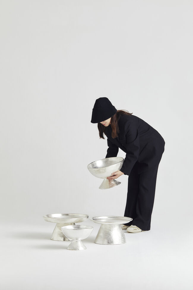 생生의 순환에 천착해온 작가다. 은을 재료로 자연의 생장과 인간의 삶을 연결하는 작업을 선보인다. 꽃의 암술과 누에고치를 형상화한 샹들리에, 나뭇잎 촛대, 고치 껍데기 조각은 자연의 순간을 일상 사물로 변주하며, 우리 삶의 덧없음과 그 안의 아름다움을 반추하게 만든다.