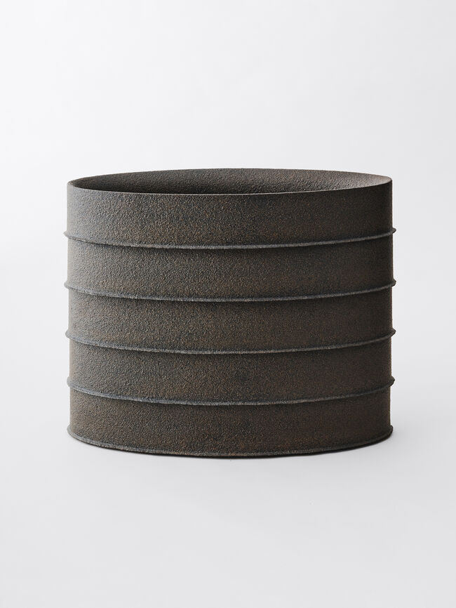 나는 물질 간의 만남을 포착하여 물질, 형태, 공간 사이를 유영하는 조형 언어를 모색한다. 물질은 단순히 형태를 구성하는 재료를 넘어 조형적 확장을 추동하는 핵심 요소가 된다. 이번 전시에서는 캐스팅용 자기 슬립에 다양한 부유성 물질을 첨가하여 새로운 시각적, 미학적 가능성을 탐구했다. 흙물 속에 부유하는 물질들은 유동성과 중력 사이를 오가며 긴밀하게 연결되고, 그렇게 쌓인 부유 물질들은 기물의 표면에 독특한 질감과 색채를 그려낸다. 물질이 부유하고, 응집하며, 고결되는 과정을 통해 형상이 기물로 완성된다. 기물의 형태는 이장 주입성형으로 구현한 이중 기벽 단위체를 건축적으로 쌓아 올리는 방식으로 구성된다. 단위체의 반복과 조합으로 점차 확장되는 형상은 새로운 공간적 의미를 생성한다. 또한 내부에 빈 공간을 품은 이중 기벽의 구조는 내부와 외부라는 상이한 공간 질서를 동시에 구축한다. 때로는 기형vessel form으로, 때로는 조형물로 발현되는 사물은 도자라는 공예 장르가 물질과 공간을 새롭게 조직하는 하나의 매체로 작동함을 잘 보여준다.