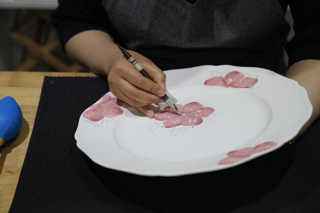 Tip 본인이 의도한 구도와 스케치는 접시 모양과 잘 어울리도록 배치하는 것이 중요하다.