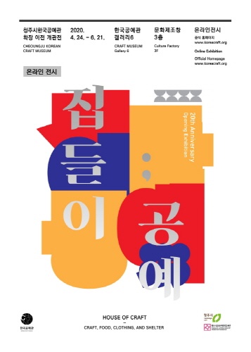 한편 지난 4월 24일부터 6월 21일까지 청주시한국공예관에서는 문화제초장 3층 갤러리6에서 열린 공예관 이전 개관전 <집들이; 공예>를 온라인으로 선보였다. 국내 외 29명 작가가 참여한 이 전시는 공예, 의, 식, 주 총 4가지 테마로 구성되었다. 온라인 전시를 위해 물리적인 전시 공간에 디스플레이된 500여개의 작품을 카메라로 촬영했다. 그리고 지도 위에서 마우스로 원하는 위치를 클릭하면 해당 장소에서 촬영한 이미지가 팝업 형식으로 뜨도록 했다. 사방으로 시점을 변화시키기도 하고 줌 기능을 통해 화면을 확대하거나 축소할 수도 있다. 이와 동시에 매주 1회 유튜브 채널을 통해 큐레이터, 도슨트, 관장의 내레이션으로 여러회에 걸쳐 각 테마 별 작품을 설명하는 영상을 업로드 했다. 유튜브 조회수는 건 당 평균 263여 명으로 파악된다. 5월부터는 정부가 ‘생활 속 거리 두기’로 코로나19 단계를 하향 조정하면서 사전 예약제로 현장을 찾은 방문객도 1600여 명에 이르렀다. 보도 자료에 따르면 온라인 전시기간 동안 평균 300여 명이 접속한 것으로 집계되었다.