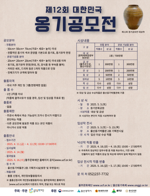 제12회 대한민국옹기공모전_2025.4.11.~4.12. 접수