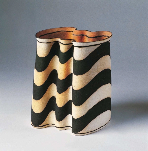 형태를 강조하고자 정교하게 장식된 기하학적 패턴이 돋보이는 작품이다. 작가는 네팔, 티베트, 인도, 페루, 이란 등을 여행하면서 영감 받은 문양을 무광택 유약으로 기물에 바른 후 검은 산화물을 덧칠하여 패턴을 더욱 강하게 부각시킨다. 이로써 형태와 패턴이 하나로 합쳐지고 변형되어 그 자체로 일체화된 작품은 입체적인 시각표현을 통해 일루전을 선사한다.