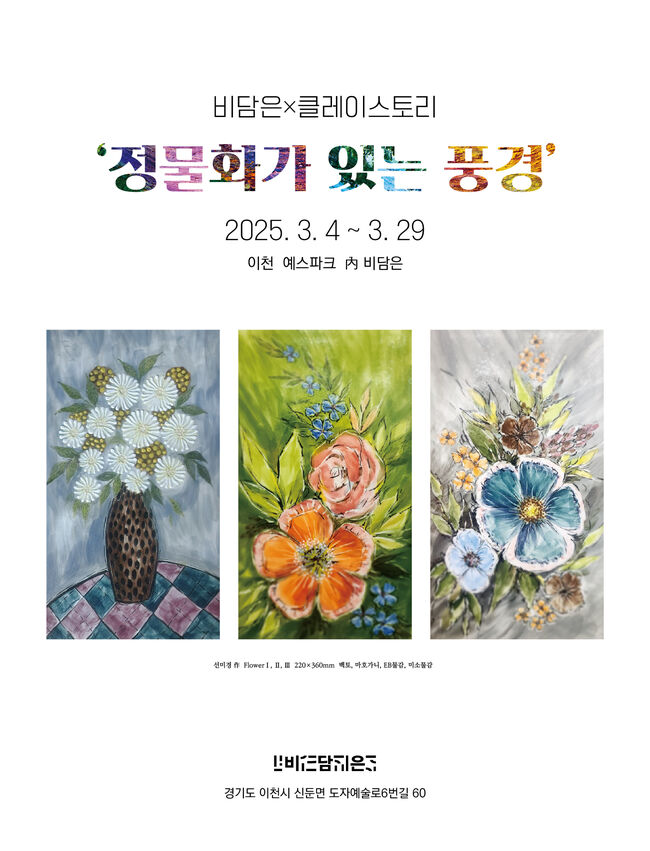 경기도 이천의 도자 재료상 비담은에서 오는 3월 4일부터 29일까지 《정물화가 있는 풍경》 전을 개최한다. 이번 전시에서는 핸드페인팅 물감 전문업체 클레이스토리의 물감을 활용해 전통적인 정물화 요소를 도자기에 표현한 선미경 작가의 작품이 전시된다.