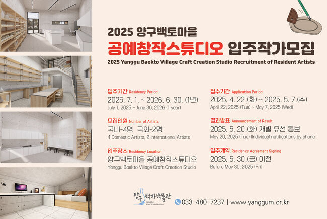 양구백토마을 공예창작스튜디오 입주작가모집 Call for Artists: Yanggu Baekto Village Craft Studio Residency Program_2025.4.22.~5.7.