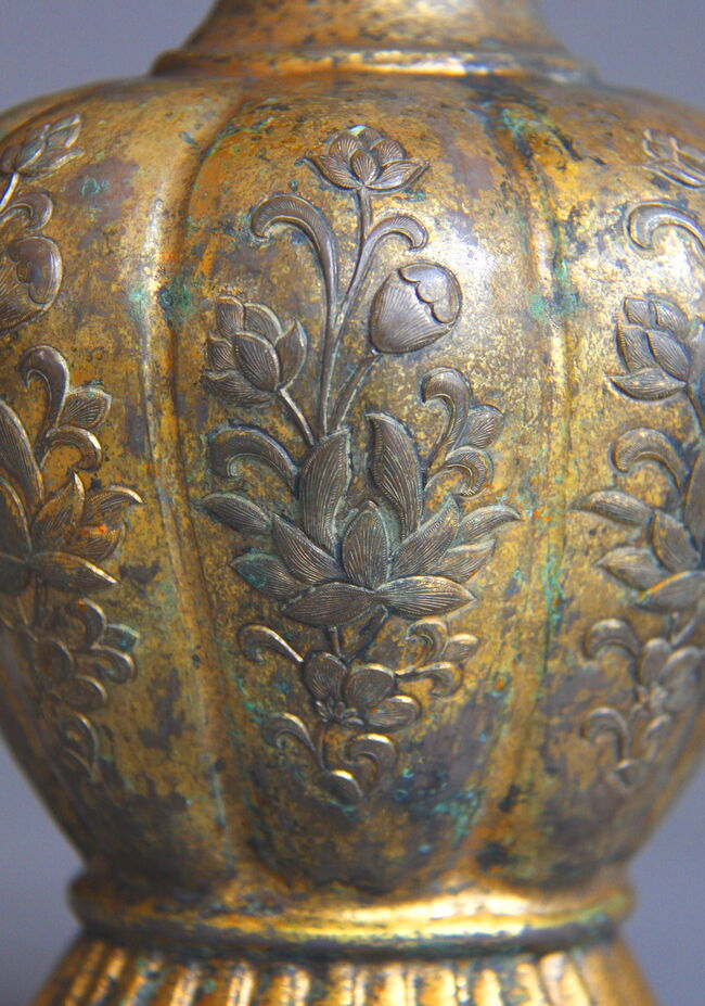사진1) 「참외모양 연꽃가지무늬 도금 은병 銀製鍍金蓮花折枝文瓜形甁」 고려시대 |