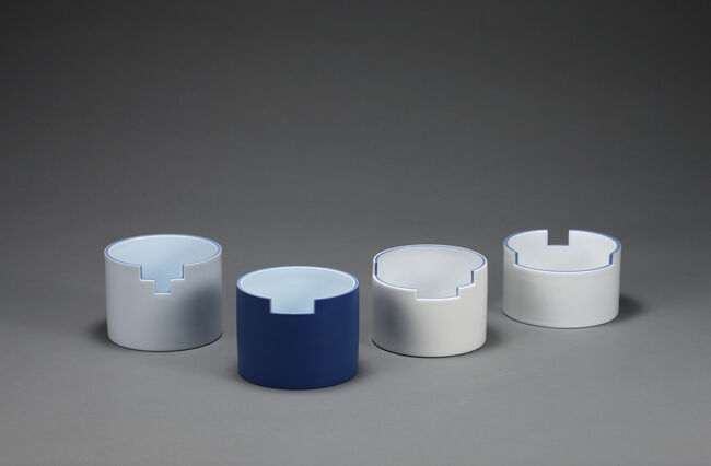 이민수 작가는 서로 다른 색이 겹겹이 쌓여진 색 층과 잘라낸 단면이 만들어내는 작품으로 잘 알려져 있다. 물레 위에서 원통형 석고 틀에 흙물을 바르고 말리고를 반복하면서 여러 겹의 흙이 층층이 쌓인 형태를 만든다. 이를 건조시켜 기하학적 형태로 자르면 단면이 드러나 색이 다른 원통이 겹겹이 겹친 색 층이 나타나고, 원통의 단면에 보이는 색 층은 안과 밖, 위와 아래의 경계선을 명확하게 하며 단면의 윤곽을 더욱 잘 드러난다. 작가는 작품에 쌓인 수많은 시간과 기술의 집적을 나이테와 같은 단면을 통해 보여주고 있다.