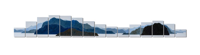 전통을 현대적 감성으로 재해석하려는 작가의 시도에서 산의 형태는 단순화되었으며 산수山水를 표현하지만, 산은 보이고 물은 보이지 않는다. 후하이잉 작가의 산수는 배합 비율과 불의 온도, 태토와 유약의 성질 등에 따라 변화하는 특성을 지닌 청화 안료를 사용하여 농담을 정교하게 표현하는 것으로 요약된다. 자칫 가벼워 보일 수 있는 단순미는 점묘법에 의한 수많은 점들과 중첩된 풍부한 색감으로 더욱 가치를 더하고 있다. 색채는 전체적으로 청화 안료색인 푸른색으로 통일하였으며, 가까운 곳은 옅은 초록색과 저녁 석양의 노을빛 색으로도 변화를 꾀했다. 작가는 실제 산수와 같은 공간감 을 상상할 수 있도록 작품을 서로 연속해서 이어 긴 그림으로 설치한다.