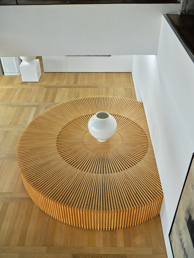 여기서 주목할 개념이 동아시아 음악의 십이율十二律이다. 십이율은 고대 중국과 한국의 음률 체계로, 자연의 질서와 계절의 순환, 인체의 호흡과 연결되는 구조적 조화의 체계이다.2) 강민수의 백자는 이 십이율처럼 각각의 그릇이 하나의 음이며, 그 전체는 하나의 음계로 구성된 백자의 교향악交響樂이라 할 수 있다. (여기서 교향곡이라 쓰지 않고 교향악이라 쓰는 이유가 있다. 서로 교차하여 울리는 음악이라는 뜻 외에 서로 공명하는 즐거움이라는 뜻도 내포하기 때문이다). 따라서 각 그릇은 고유한 주파수와 공명을 지니며, 전시 공간은 하나의 울림통이 되어 관람자의 몸과 정신을 진동할 것이다.