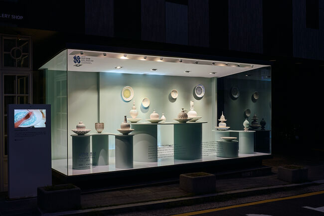 KCDF 윈도우갤러리에서 열린 권혜인 개인전 《시간의 초상》은 무의식의 감각을 깨우는 도자 조형을 통해 시간과 기억, 삶과 죽음을 탐구한다. 프루스트의 문학에서 출발한 이번 전시는 선조들의 미감과 상징을 현대적으로 재해석한 기물들을 통해 과거와 현재를 잇는 감성적 시공간을 만들어낸다. 제기와 태항아리를 닮은 유기적 구조물 위에 전통 문양을 정교하게 새기고, 청자유나 진주빛 유약으로 마감해 빛의 표면을 구현한 작품들은 조각과 유약이 맞물리며 시각적 깊이를 더한다. 권혜인은 단순한 형상 재현을 넘어 감각과 철학이 깃든 도자를 제안한다.