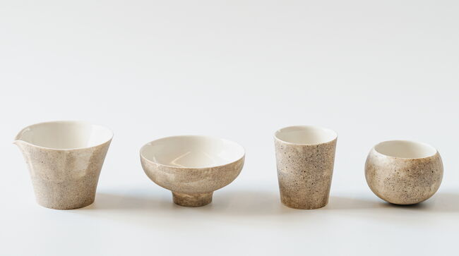 자연을 닮은 감성을 지닌 베니도의 「온모래 시리즈」는, 정제된 형태 위에 투명한 백토와 유약의 결정을 얹어 조용히 반짝이는 식기를 만들어낸다. 흙과 빛, 시간의 감각을 유약과 형태로 구현하고자 한 이 시리즈는 여름의 식탁에서 제각기 다른 방식으로 계절의 분위기를 끌어올린다.