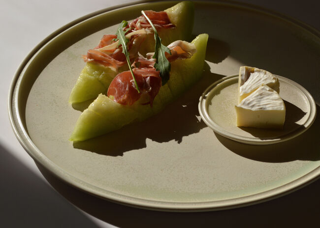 추천 음식: 하몽 꼰 멜론 백사장 위로 스친 자연의 흔적을 담은 듯한 white sand 컬러는 빛에 따라 섬세하게 반짝인다. 하몽 꼰 멜론처럼 색감과 신선도가 중요한 여름의 전채 요리를 더욱 돋보이게 한다. 사이즈별 연출도 가능해, 핑거푸드나 소스 분리에도 유용하다.