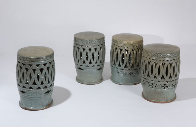 고려시대 사찰에는 부처님께 올리는 중요한 공양물로 최상급의 차를 선택하여 바치고 수행승修行僧들이나 공양을 드리는 사람들을 대접하는 긴요한 음료로서 왕실과는 다른 별도의 차의식茶儀式이 성행하였던 것으로 보인다. 고려 왕실, 사찰, 지방호족, 평민까지 생활화된 차문화의 발전은 실내외에서 각종 모임이 성행했음을 알 수 있다. 이런 모임들은 실내는 물론이고 야외에서도 성행하였는데 이때 사용된 야외용 도자기 의자에 대해 살펴본다. 대부분 의자는 팔걸이와 등받이가 있는 나무로 만든 것이 가장 많이 사용되었을 것이다. 그러나 야외에서 모임을 할 때는 의자를 실내에서 옮겨야 하는 번거로움이 있었다. 항상 야외에 배치해 둘 수 있는 의자를 도자기로 만들면 내구성이 강한 도자기의 특성으로 사계절 밖에 놓아도 사용하는데 불편함이 없었다. 도자기로 만든 의자는 스툴stool 형태로 등받이는 없고 배부른 원통형이며 조선시대 중부지방의 옹기항아리 모습이다. 높이는 40~50cm 정도이며 방석을 깔고 앉았을 것이다. 경우에 따라서는 여러 용도로 사용된 것으로 생각되는데 실내로 옮겨져 의자의 용도 외에 화분 받침대 등 장식용 기구로도 사용된 것으로 볼 수 있다. 이런 형태의 도자기 의자는 입식 문화가 항상 유지된 중국에서는 당나라부터 사용한 유물이 남아 있으며 각 왕조를 거쳐서 전해져서 현재도 생산 판매 되어 사용하는 사례가 많다. 사진11