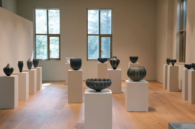 김준용 작가는 이번 전시에서 화려한 색을 거두고, 수렴된 먹색의 세계를 통해 유리의 새로운 가능성을 탐구했다. 달빛을 닮은 먹색은 붉음과 푸름, 무색의 경계를 오가며 색의 본질을 사유하게 만든다. 색을 절제한 대신, 표면의 질감과 조형성이 전면에 부상한다. 작가는 카빙carving을 통해 유리 위에 시간의 결을 새기며, 단단한 물성 위에 온기와 감각의 층위를 더한다. 이러한 질감의 언어는 감정의 흐름과 침묵의 미학을 동시에 담아내며, 동양화의 농담濃淡처럼 깊이와 여운을 형성한다. 김준용의 작품은 유리의 투명한 차가움 속에서 동양적 사유와 절제의 미감을 구현하며, 색의 부재를 통해 오히려 색의 존재를 드러내는 역설적인 조형미를 선보였다.