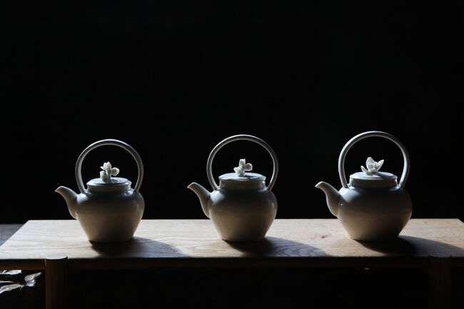 나는 물레 앞의 고요한 시간 속에서 자연의 숨결을 느끼며 흙을 빚는다. 그 중심에는 언제나 ‘꽃’이라는 매개체가 있다. 피고 지는 찰나의 생명력을 지닌 꽃은 나에게 고요함과 순간의 아름다움을 동시에 일깨우는 존재이다. 이러한 감각은 차를 우리는 시간과도 닮아 있다. 잠시 머물며 향을 음미하고, 마음을 비우는 그 순간처럼.