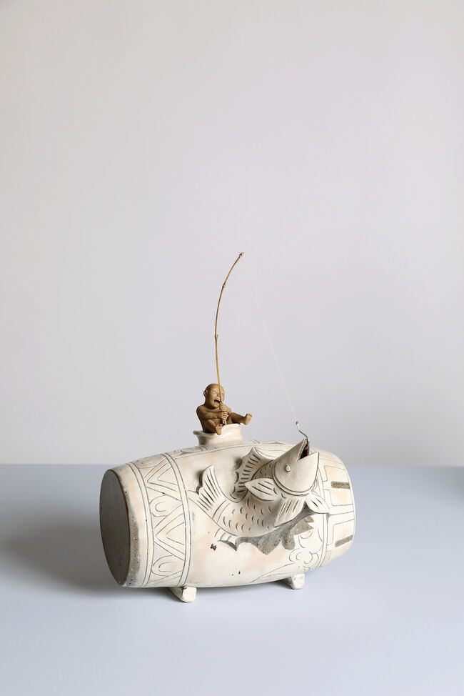 윤호준 「분청사기 어문 잡는 낚시 달인 아태공」 38×26×21.5cm |