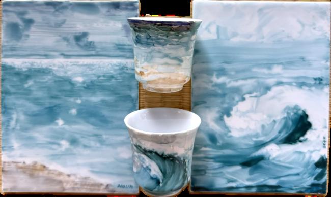 포슬린 페인팅Porcelain Painting은 백자에 특수 안료와 오일로 그림을 그려 800℃ 온도에서 가마에 소성한 것을 말한다. 대학에서 순수회화Fine Art를 전공한 역량을 바탕으로 도자 페인팅에 매료되어 단순 공예로 국한하지 않고 보다 더 넓은 작업의 세계를 보여 주는 네 번째 개인전이다. 이번 개인전은 모든 존재의 상호 연결성을 의미하는 ‘인드라망’이라는 철학적 개념을 시각적으로 펼쳐 도자기에 차를 마시는 도구로 풀어 냈다. - 작가 노트