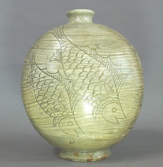 사진3) 「분청사기 조화 물고기무늬 편병」