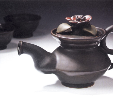 가장 자연에 가까운 차그릇을 빚고 싶은 마음으로 가장 순수한 마음으로 돌아가 먼저 흙 한덩이를 손바닥에서 둥글게 뭉쳐 송편 빚듯이 수십번 수백번 만지작거려 몸체를 빚고 뚜껑을 빚어 몸체와 뚜껑이 잘맞는 좋은 인연으로 만남을 갖게 하고 아름다운 찻물줄기와 예쁜 찻물소리를 위하여 다시 작은 흙한덩이를 밀대로 얄게 밀고 잘라서 손으로 주구를 빚는다. 빠르게도 느리게도 아닌 조금 힘있게 그려지는 아름다운 곡선의 찻물선과 마지막 똑하고 끊어지는 물방울 멈춤의 그 절묘한 차주전자의 아름다움을 손에서 손으로 마무리 한다.