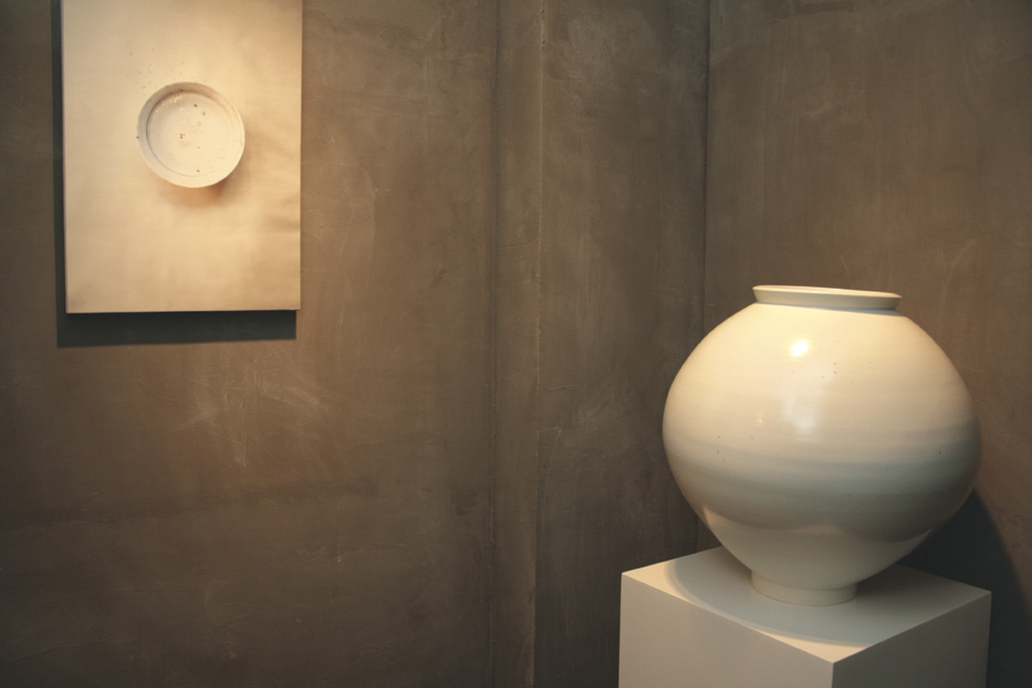 강민수는 달항아리에 매료된 도예가로 조선시대 백자 달항아리가 주는 미적 감동으로부터 자신이 도예가로서 지녀야 할 하나의 이상향을 발견한다. 그는 이를 실현하기 위해 이성과 기교를 앞세우기보다 온몸으로 사유하기를 철저히 고집하며 ‘달항아리’라는 대상과 자신을 동일화시켜나가는 과정을 선 보였다. 강민수가 빚어낸 달항아리는 긴장감이 있는 세련된 라인으로 여리고 섬세하면서도 대범함을 품고 있다. .jpg)