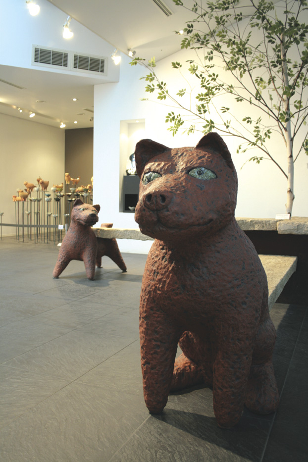 경기도 헤이리에 위치한 한향림 갤러리에서 작년 12월 1일부터 2008년 1월 14일까지 <Dreming Garden-The Truth About Cats & Dogs> 전이 열리고 있다. 전시장을 가득 메운 작품 대부분은 다름아닌 개와 고양이. 전시장 중앙에는 도예가 이재준의 큼직한 환경조형물이 놓여있고 안쪽으로는 도예가 김경연의 각각 다양한 포즈와 표정을 지닌 고양이들과 도판 작품들이 전시되어 있다. 두 작가에게 ‘고양이’와 ‘개’는 자연과 여성 본질에 대한 상징적 의미 그리고 아주 개인적이고 일반적인 삶에 관한 궁금증을 풀어나가는 매개체의 역할이다. 또한 그 매개체를 통해 표현하고자 하는 ‘진실’이란 바로 그들이 꿈꾸는 ‘드리밍 가든Dreaming