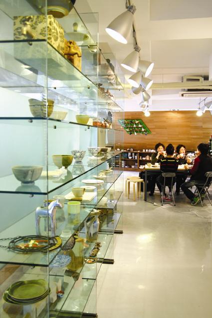 디엠아이 공방은 서울 삼성역 무역센터 대각선 맞은편에 위치한 골목 안에 자리하고 있다. 푸른 회색을 띠는 유리외벽의 건물은 도대체 도예공방으로 보이지 않는다. 엘리베이터를 타고 5층까지 올라가 공방 출입문을 열고 들어가기까지 그 느낌은 여전하다. 심플한 건물외관에 세련된 간판이 그렇다. 뮤직 앤 세라믹 인 디엠아이 아카데미MUSIC and CERAMIC in DMI ACADEMY는 2,3,4층은 실용음악학원으로, 5층은 도예공방으로 운영되고 있다. 한 건물 안에 음악과 도예가 함께 진행되는 이곳은 작곡가 이경섭과 도예가 한주은이 일반 예술아카데미와 차별화를 두기 위해 Ceramic과 Music을 어우러지도록 한 예술아카데미이다.