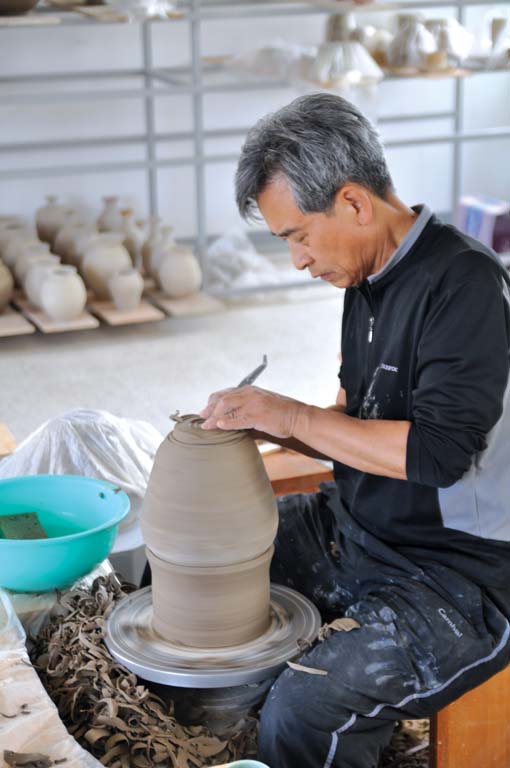 매일 30여 개 이상 사발 작업을 하면서 굽깎기와 접시, 음각, 압출양각, 상감 등 문양기법과 광구병, 대접, 매병, 달항아리 등 다양한 작품의 기법을 배웠습니다. 특히 달항아리는 평소 큰 기물을 만들어 보지 못했던 제게는 작은 사발을 기본으로 이렇게 큰 항아리를 만들 수 있다는 것이 신기하고 재미있는 경험이었습니다. 이 외에도 주전자, 유약 만드는 법, 시유 하는법, GAS가마 사용법, 전기가마 환원으로 바꾸는 법 등 많은 것을 배웠습니다.