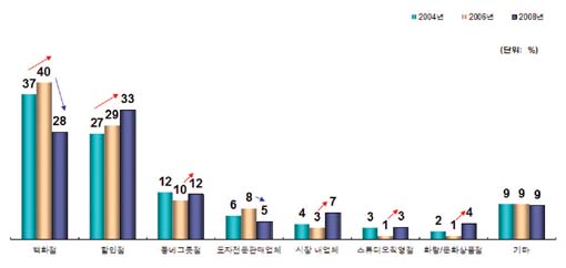 일반적으로 소비자들은 그들의 생활권에서 쉽게 접근하기 용이한 장소에서 구매를 한다. 비싸지만 고급스러운 브랜드 제품을 원하는 사람은 백화점을 찾고, 좀 더 실용적이고 저렴한 제품을 원하는 사람들은 할인점을 찾는 것이 당연지사다. 그래서 2008년에 할인점, 백화점, 동네 그릇점에서 소비자가 구입한 비중이 전체 대비 73%를 차지했던 것이다. 그러나 요장업체들의 대표적인 유통망이라고 답한 요장직영점/직판은 겨우 3%(스튜디오 직영점 비율)밖에 소비자가 찾지를 않았다. 그러니 이곳을 대표적인 유통채널로 생각하고 있는 요장업체들에게서 이구동성으로 매출이 줄었다고 얘기하는 것도 이제는 낯설지 않을 것이다.