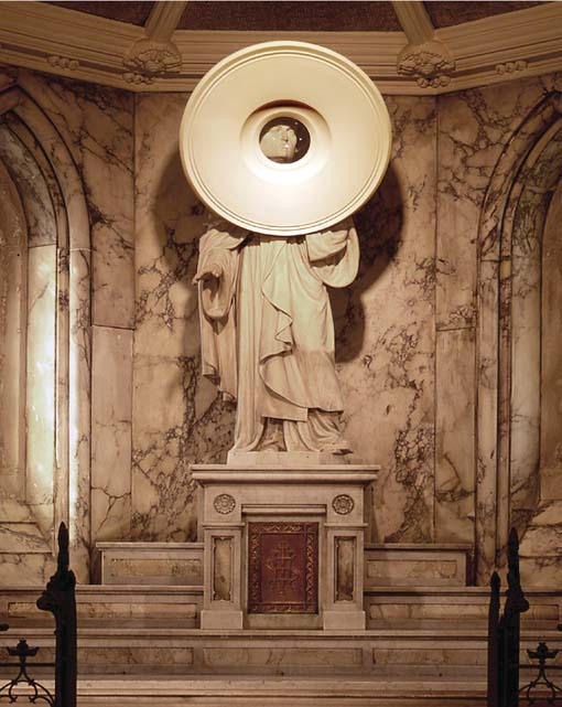 「하루 밤의 숨A Night’s Breath」이란 작품에서는 머리모양으로 움푹 들어간 베개 조각상 속에 한 여인이 여덟 시간 동안 잠을 자면서 호흡한 수분의 양을 모아 담아두었다. 이 베게의 모양은 중세 유럽 성당 지하에 있는 조각상에서 영향을 받았고, 그것은 마치 부유하는 듯이 갤러리 벽면 중간에 떠있다. 곧 사라질 수분의 존재감과 종교적 의미를 함축하고 있는 이 작품은 대상의 기표signifier와 기의signified를 개인적이고, 정치적인 공간으로 이끌고, 그 곳에서 새로운 비의秘意를 생산한다.