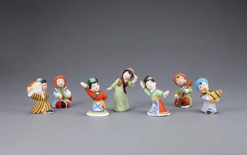 근 모자를 쓰고 있다. 또한 크고 작은 5개의 인물상은 우즈벡 족 고유의 샤반느(긴 옷)를 입고, 터번을 두르고 있다. 일선에서 한 발 물러나 유유자적한 생활을 보내고 있는 노인이 모델이었을 것 같다. 모두 4~10센티 정도의 크기로, 서거나, 앉거나, 생각하거나, 누워있는 모습에는 후회없는 생을 보낸 이들의 여유로운 표정이 나타나 있어 일본의 칠복신七福神이 떠오르기도 한다.