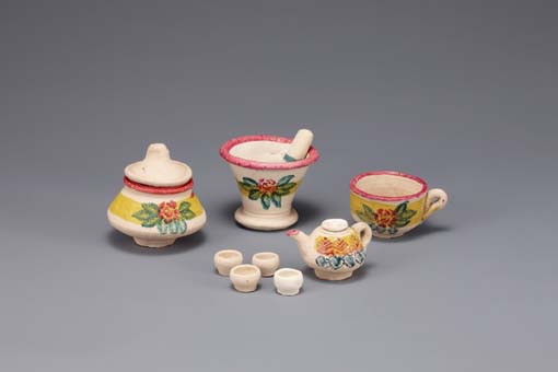 수도 양곤의 성역, 슈에다곤 파야로 들어가는 길 한 켠에 돗자리를 깔고 소꿉놀이 도구를 파는 오누이를 만났다. 단지壺, 발鉢, 항아리瓮, 접시 등 19개의 그릇을 세트로 팔고 있었다. 모두 흔히 구할 수 있는 물감으로 여러 색의 꽃문양을 그려 넣어 장식한 것이었다. 이처럼 모양과 색, 무늬의 삼박자를 갖춘 소꿉놀이 도구를 아이들에게 사다주는 사람들에 대해 경의를 표하는 마음으로 세트를 전부 샀더니, 오누이는 지금까지도 잊혀지지 않은 미소를 보여주었다. 귀국 후, 이를 지인에게 자랑을 하자, 부러워하며 그 곳을 찾아갔는데, 그 오누이의 모습도, 다른 소꿉놀이 도구를 파는 아이들도 없었다고 한다. 그 후 각지의 가마터를 방문하여 토기나 도기의 소꿉놀이 도구를 본 적은 있었지만 이와 같은 것과 마주친 적은 없었다. 오래되고 이름 있는 것들에 절대 뒤지지 않는, 이것이야말로 ‘민족조형’의 보석이 아닐까.