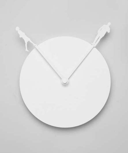 시침이, 움직임을 감지하기 힘들게 천천히 돌아가는 모습과 분침이 시침에 비해 바삐 시계방향으로 움직이는 꼴이 마치 시침이 분침을 기다리는 모습 같구나. 여기에 과거의 데이트 경험을 덧붙여 시침에 데이트에 먼저 나온 남자를, 분침에는 이런 저런 외출 준비로 늦어버려 분주히 약속장소로 걸어가는(절대 뛰어가진 않는다. 하하, 조크.) 여성을 비유 대입하면 꽤 재미있는 컨셉이 되겠는걸!