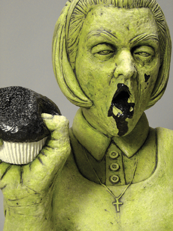 최근작에서 미스티는 아이와 어른의 경계가 희미한 세계에서 살고 있는 실물크기의 반사회적인 행동을 하는 아이들의 제스쳐와 표정을 탐구해왔다. “이 노숙한 아이들의 얼굴은 기괴하고 또한 아름답다거나 달콤하거나 무시무시합니다. 이 아이들은 죄를 지을 기회가 주어질 때 순수함의 개념에 도전합니다. 사회의 도덕과 규범에 대한 인식과 이해의 부족으로, 이 아이들은 과장된 감정적인 상태를 표현합니다.” 미스티는 자신의 작품에 대한 언급을 간략히 마무리 지었다. ‘얼빠진 영혼 단장시키기, Primping the vacuous soul’ 라고 언급했던 미국 도예비평가 낸시 설비스Nancy M. Servis의 말처럼 미스티는 인간의 고유한 주체성을 무시한 채 천편일률적인 ‘보편성’을 강요하는 사회의 모순과 폭력성에 길들여진 우리들의 무의식적인 사고에 일침을 가한다.