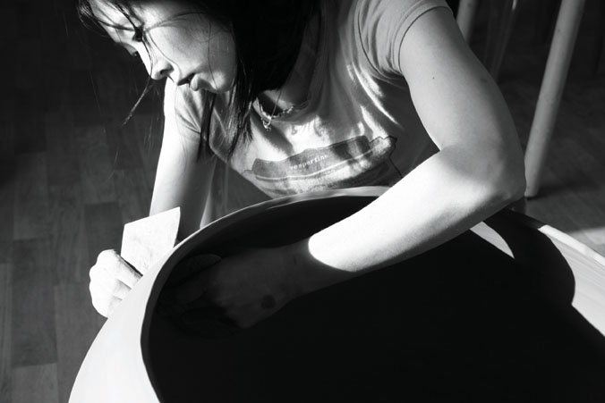 푸레독의 소성방법이 일반적인 옹기와 다르기 때문에 작업 자체가 특별하다고 할 수 있습니다. 푸레의 색감은 강렬하지만 한편으로 한정되어있기 때문에 과도한 시도는 하지 않습니다. 전통 옹기들의 여러 형태에서 모티브를 따와 현대적이면서도 전통을 잇는 형태를 주로 제작하고 장식에 포인트를 두는 편입니다. 백자가 연을 먹지 않는 성질을 이용해 상감을 넣어 검은 색과 대비를 주면서 장식효과를 주는 ‘푸레 상감’ 작업을 주로 합니다. 또 다른 방법으로는 유약이나 흙물을 입혀 수화 문을 그린 후 소성을 하는 것입니다. 그러면 옹기 표면의 질감에도 변화를 줄 수 있고 수화 문이 눈에 거스르지 않으면서도 은은한 장식의 효과를 낼 수 있습니다. 항아리 뚜껑이나 장식부분에 유기적인 형태들을 결합하는 형태를 연구하고 있습니다. 결국 전통적인 방법을 현대적으로 풀려는 시도, 그것이 특별함이라면 특별함일까 생각됩니다.