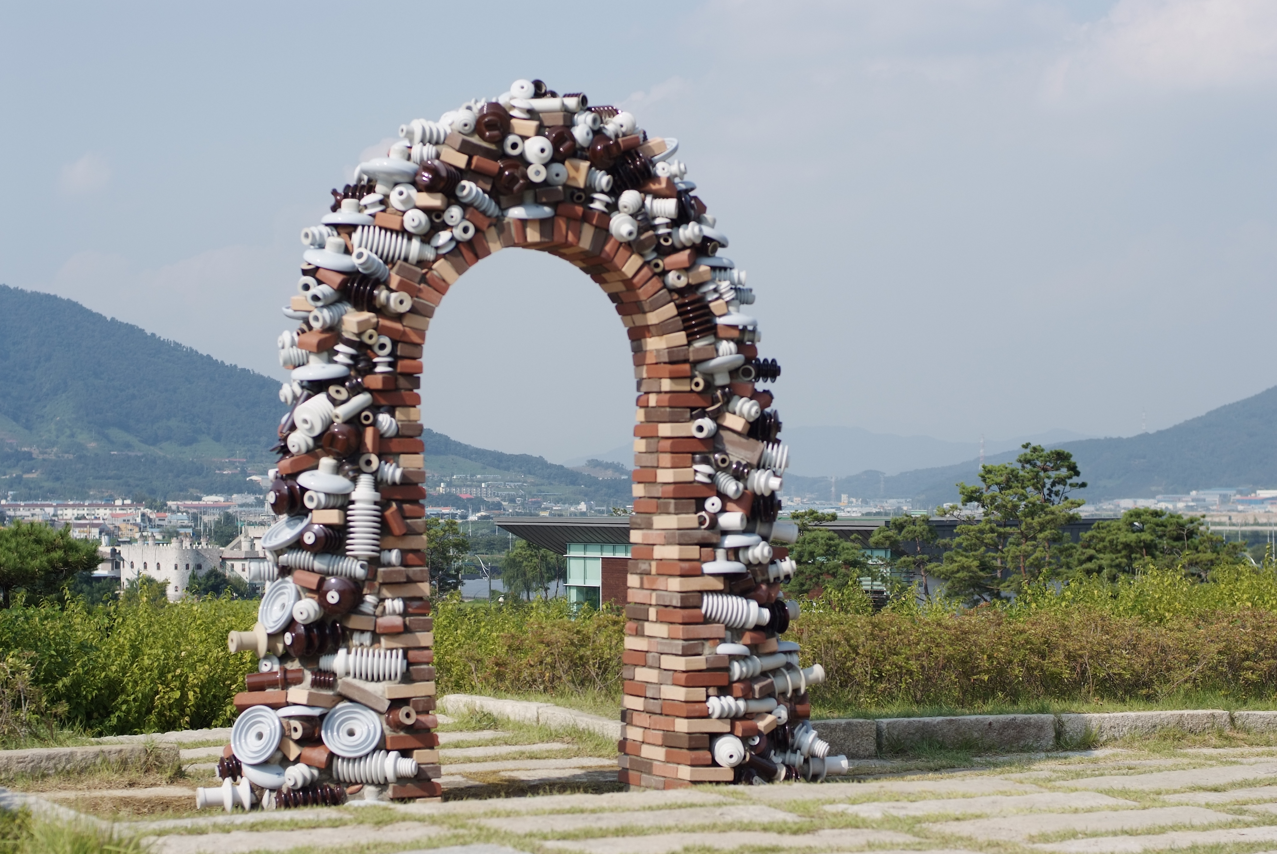 감성적 시그널의 교류에 대한 예시로 4인의 작가를 소개하고자 한다. 관람객의 움직임이 가미되어 비로소 작품이 완성되는 독일 출신의 작가 요하네스 파이퍼Johannes Pfeiffer, 1954의 2009년 작作 「삼각분할 Ⅵ-에너지 장場」은 야광색의 애자와 형광 실을 점철點綴하여 만들어내는 삼각형의 그물망 공간에서 관람객의 동선에 따라 빛이 변화한다. 사람의 움직임에 반응하는 조명의 변화와 빛과 어둠을 교차시키는 작가의 연출 감각은 애자라는 재료 속에 내재되어 있던 에너지를 빛의 형태로 발산하며 절정을 이룬다. 파이퍼의 ‘삼각분할’은 빛으로 전환된 에너지를 체험하는 매커니즘이 오롯하게 돋보이는 작품이다. 이는 오늘날 산업화되어 대량생산되는 현대 건축도자 재료 중 애자를 활용하여 공간설치 작업으로 완성한 걸작이며, 그의 탁월한 역량을 엿볼 수 있게 한다. 같은 재료를 사용하여 작업에 임했던 캐나다 국적의 작가 로버트 해리슨Robert Harrison, 1955은 자신의 작품 세계에서 메인 스트림이 되는 아치 컨셉의 작품을 야외 풍경 속에 그려 넣었다. 요하네스 파이퍼가 스스로에게 집중하면서 무의식의 발산을 유도하는 추상적 기법으로 자신의 역량을 발휘하였다면, 해리슨은 재료의 축적과 나열, 중첩 등의 기법을 통해 실험적인 작업을 선보였다. 또 다른 작가 최인선1964~의 「우리는 모자이크다」라는 작품은 원색의 세면기와 검은 벽면의 드로잉이 조화롭게 구성되어 있는데, 이는 실상 설치된 작업이라기보다는 하나의 회화작품을 보는 듯한 인상을 전해준다. 작가는 공간을 하나의 거대한 캔버스로 적극적으로 활용하여 작가 특유의 드로잉과 다양한 색감 및 흘리기 기법으로 도색한 세면기를 일정한 간격으로 벽과 바닥을 채워 공간과의 적절한 긴장감을 유지하며 미니멀리스트한 작품을 선보였다. 마지막으로 현재 클레이아크김해미술관에 마스터 작가로 초청되어 작업을 전개하고 있으며, 다가오는 10월의 특별전을 준비하고 있는 여선구1960~ 작가의 경우, 조형된 상象들의 포갬, 중첩으로 일련의 군상을 일구어내고 있다. 또한 강렬한 색채의 색상 대비 및 유려한 흘림과 포갬을 통해 자신의 격정적인 감정을 표출하고 있으며, 그가 선택한 주제의 효과적인 전달을 위하여 임의적으로 형태 및 색을 과감하게 왜곡 및 변형하는 기법을 보여주고 있다.