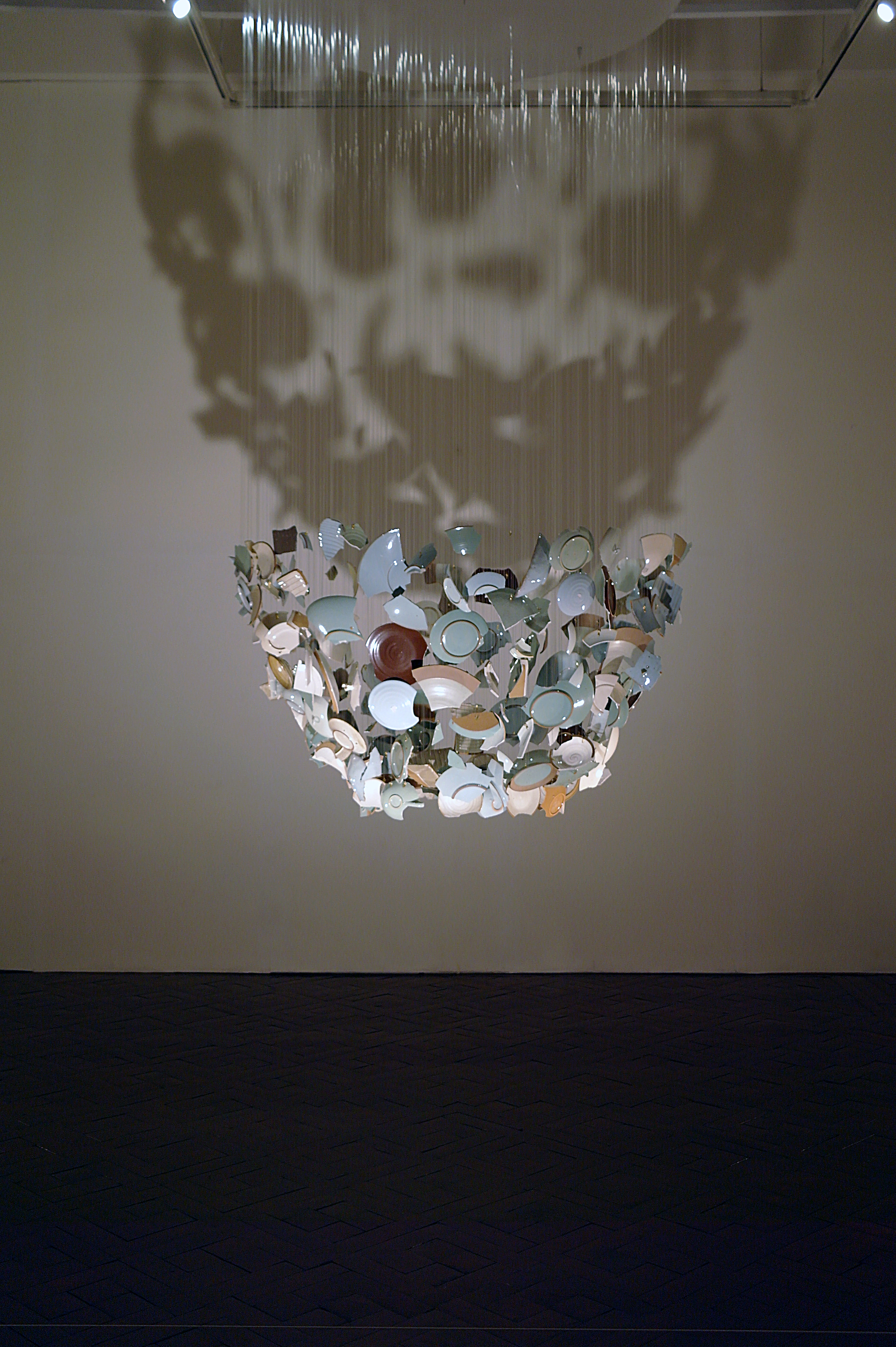그릇과 파편들로 그릇의 모양을 형상화 한 설치작품