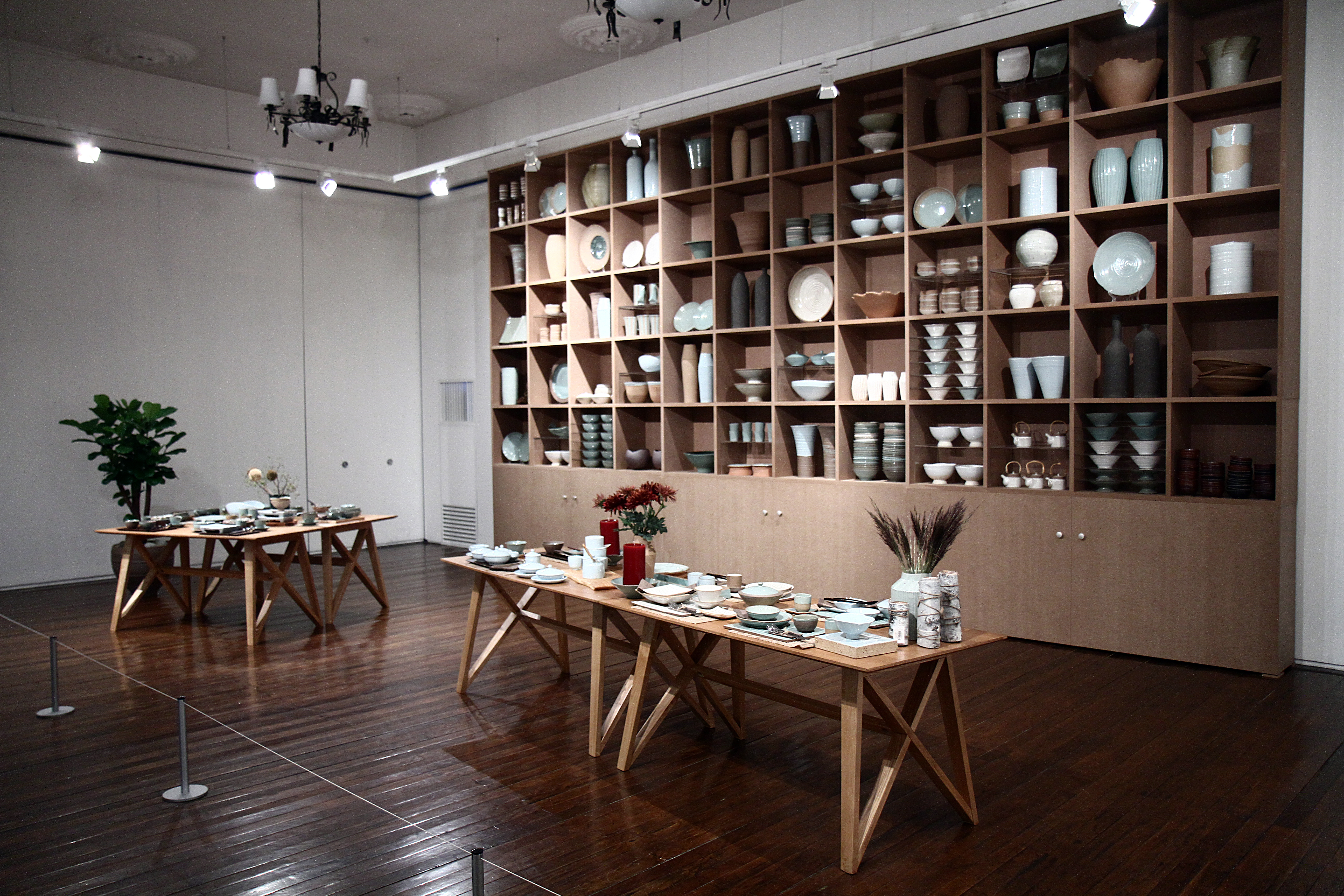 그릇의 조형미를 강조하고 그것의 쓰임을 보여주는 설치