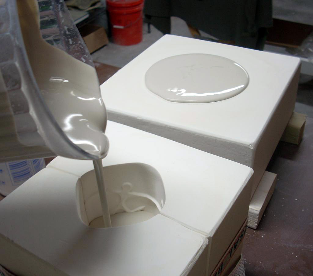 석고몰드 제작과 건조가 완료되면 슬립주입을 이용한 다음 성형 단계로 진행 된다. 이것을 슬립캐스팅이라 부른다.