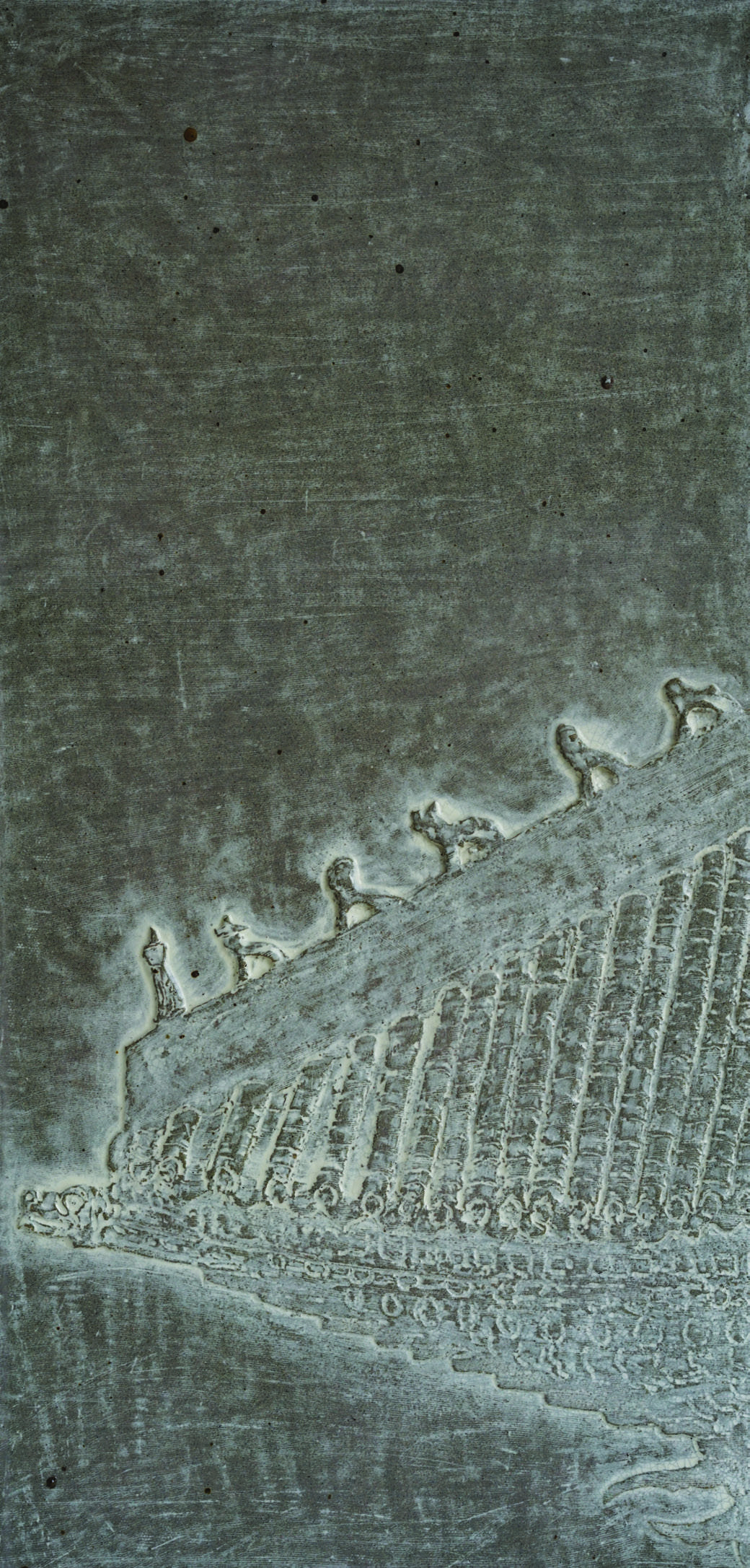 「기원」 34×71×0.7㎝, 혼합토, 분청유