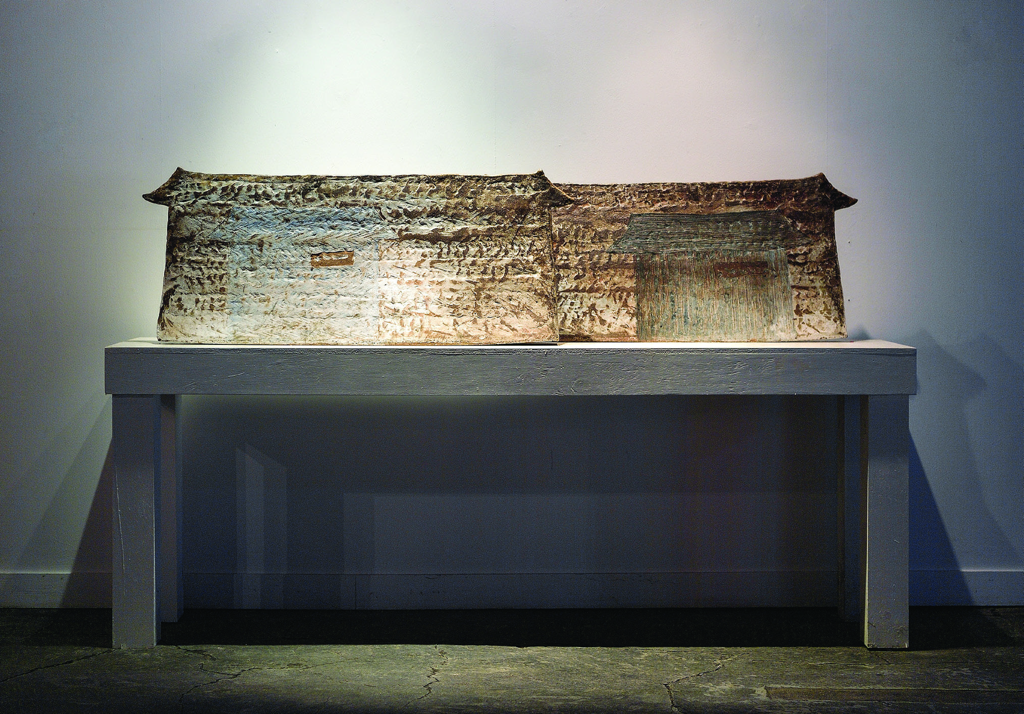 「그림이 있는 집」 90×12×80cm, 2 pieces, 석기점토, 색화장토, 코일링,장작가마 소성 1250℃, 2015