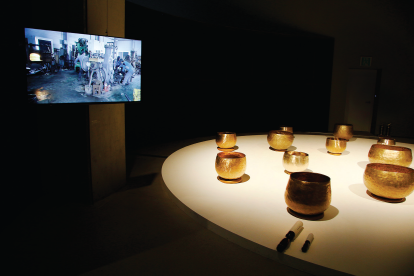 이봉주 「방짜 좌종」과 함께상영되고 있는 공방에서의 작업모습 영상