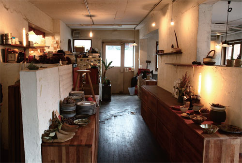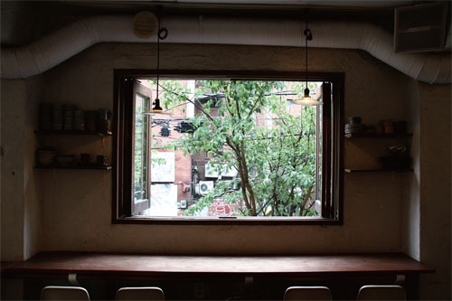 ‘히비’는 너무 정제돼 있지도 않고 너무 흐트러져 있지도 않고 딱 그 중간쯤에 있는 듯 했다. 곳곳에 벗겨진 페인트, 전시를 해왔던 흔적들, 나무 테이블, 주황빛 조명이 있는 주방은 ‘다정’한 공간을 만들어냈다. 탁 트인 창문을 통해 볼 수 있는 홍대의 거리, 전깃줄, 세월이 묻어나는 건물들은 계절에 맞는 적당한 적적함을 느끼게 했고 아기자기한 도자기 그릇들 안에 오롯이 담겨있는 솔방울들은 가을을 알렸다. 일본느낌이 물씬 풍기는 다양한 도자기들은 가게 곳곳에서 원래 자신들의 자리에 앉은 듯 자연스러웠다.