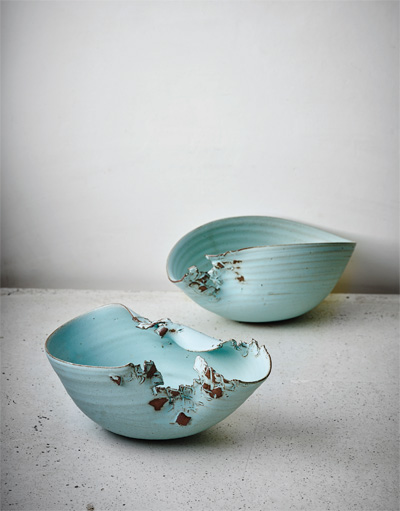 물레질을 거쳐 탄생하는 초벌 전의 부드럽고 얇은 동심원의 그릇은 직물처럼 부드럽고, 손으로 들어 올리면 그 모양을 따라 결대로 휘어진다. 작업하는 손의 촉감이 남은 채 완성된 그릇은 비대칭적이고