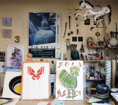 작가의 작업실엔 그가 세계 이곳저곳 여행하며 수집한 물건들이 가득하다. 작품과 함께 어우러진 모습에서 그의 취향을 엿볼 수 있다.