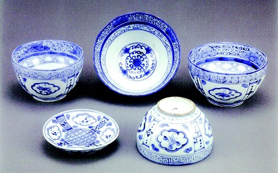 특히 1847년 정미년丁未年에 치러진 헌종憲宗과 경빈 김씨慶嬪金氏(1832-1907)의 가례에 사용된 것으로 생각되는 ‘순화궁順和宮’ 점각명 자기의 경우 그 화려함이 조선 후기 청화백자 중에서도 유달리 돋보인다. 그릇의 외면을 구획하고 화창花窓과 절지문折枝文 및 구름형 꺾쇠를 그려 넣었을 뿐 아니라 안쪽까지 구연을 따라 화당초문대花唐草文帶와 빙렬문대氷裂文帶를 장식했고, 안쪽 바닥면에 십자형十字形으로 화당초문花唐草文을 시문하여 무척 공을 들여 제작했음을 알 수 있다. 헌종이 경빈 김씨와의 혼인을 고집해 효정왕후와의 결혼 뒤 결국 후궁으로 들인 일화는 잘 알려져 있는데, 낙선재와 석복헌을 나란히 지어 경빈 김씨를 기거하게 할 만큼 극진했던 마음이 그릇에도 담긴 듯하다.