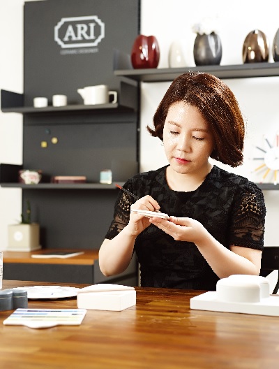Q 수업 커리큘럼을 알려주세요.유 초벌 된 기물을 준비해 세라믹페인팅의 기초부터 시작해 전문가 과정까지 단계별로 알려드리고 있어요. 기존의 페인팅 수강 업체에서는 대부분 꽃, 나뭇잎 그림이 많더군요. 전 얼룩을 최소화시켜 칠하는 방법과 문양 디자인, 수채화 기법, 물레 기법, 그라데이션 기법 등을 가르쳐드려요. 수강생이 혼자서도 페인팅 작업 할 수 있도록 만들어주는 것이 저의 목표거든요.
