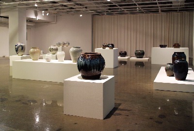 전시는 한 공간에서 해주백자와 회령도기를 적절하게 나누어 보여준다. 두 도자간의 공간을 획일적으로 구분하지 않는 대신 작품 사이사이를 자유롭게 관람할 수 있도록 동선을 구성했다. 자연스럽게 산책하는 기분으로 둘러보면 강렬하고 익살스러운 무늬의 해주백자와, 우주의 빛을 담고 있는 듯 오묘한 유색을 지닌 회령도기의 매력에 어느새 흠뻑 빠지게 된다. 전시실로 들어서면 왼편에서부터 차례로 해주백자와 만날 수 있다. 1917년에 제작된 「백자 청화운룡문 ‘대정6년’명 병」을 시작으로 청화로 화려한 문양들을 베푼 크고 탐스러운 준樽과 호壺를 지나 무늬 없이 다양한 유색을 볼 수 있는 해주백자까지 이어진다. 전시장 가장 안쪽에서부터 시작되는 회령도기의 검고, 붉은 빛깔들은 해주백자와 비교해 색다른 시각적 자극을 선사한다. 해주백자와 회령도기 모두 화려한 무늬 혹은 신비한 유색을 지닌 표면에 비해 그 쓰임은 옹기, 사발 등 매우 평범하다. 이러한 차이에서 순박하고 수수한 멋이 느껴진다.