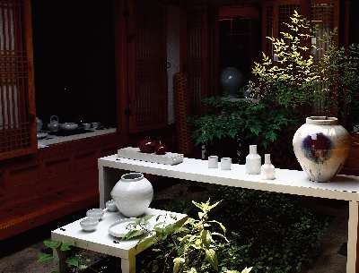 서울 계동길에 위치한 공예문화상품점 근대화상회에서는 5월 2일부터 18일까지 테이블 위에 신선함을 더해줄 박기용 작가의 식기를선보였다. 네모나게 뚫린 중정을 중심으로 빙 둘러선 ‘口’자 구조의한옥에서 작품들은 어색함 없이 공간에 자연스레 스며들었다.